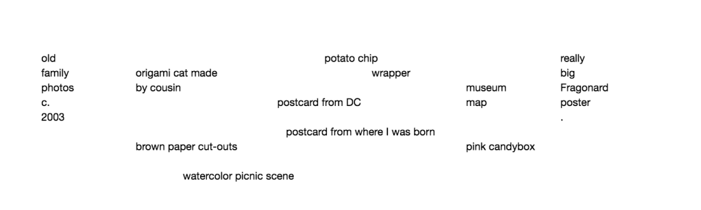 This is not to say that the emotion bits are always intact and smooth– which is not to say, textureless; Renu Bora will remind us through Eve Sedgwick that “‘smoothness is both a type of texture and texture’s other’ (99)” (6). Nothing is intact; you know this already. Sometimes these bits are crumbled. Sometimes they are that piece of graphite your sister got stuck in her hand in second grade and the skin just grew over it, entrapping it forever so you can still see a faint bit of gray. Sometimes they are grains or dust or “speaking, ambulatory dirt” (7) that feel like the sand you get in a scrape when you fell off your bike in 2004. And then the scab grows right over it if you don’t wash it with soap and warm water. And your body thinks it’s healing and it is healing but perhaps it’s also in denial that things are different now and they probably will continue to be, that your sheets of skin have incorporated all new matter into their weave. Then again, your body is undeniably smarter than you. And I should say that even if you do rinse with soap and warm water you will never get all the grains of dirt out of your scrape. Alas, I’m not that naïve.